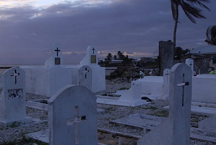 Die beiden sehen jetzt zum ersten Mal das Land ihrer Eltern und Vorfahren. Ihr Atoll hat die Atombomben irgendwie überstanden. Doch nun bricht die nächste Katastrophe herein. Und schon jetzt ist klar: Den Klimawandel wird Eniwetok nicht überstehen. Lange Dürreperioden und schwere Stürme setzen den Bewohnern zu. Und irgendwann wird der Ozean kommen und die weißen Sandstrände, die Kokospalmen und die Brotfruchtbäume verschlucken, lange bevor das Plutonium aufgehört hat zu strahlen. Das wissen auch Brooke und Mores. Ihr Land ist ein Mahnmal für die Zerstörungskraft des Menschen.